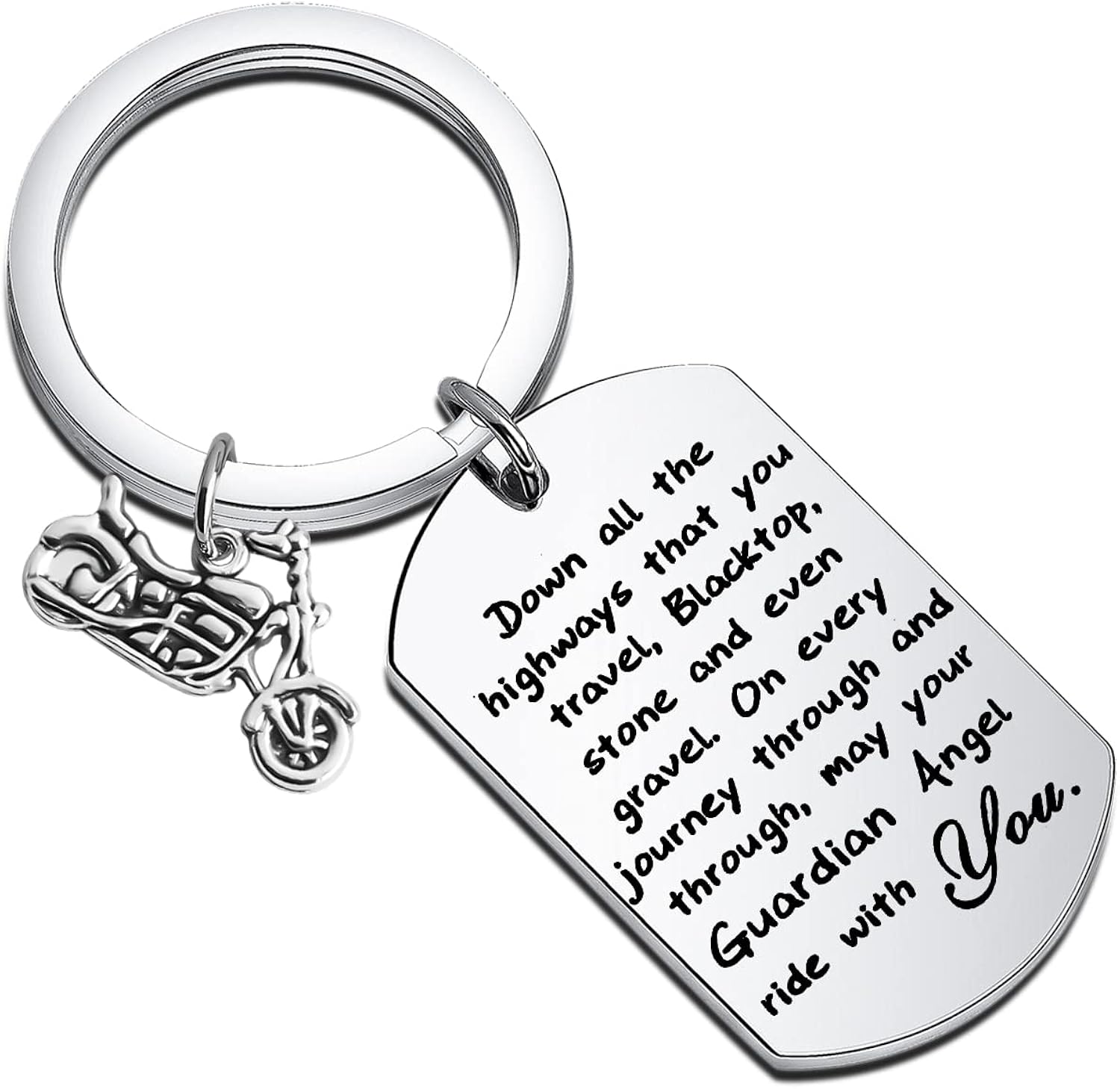 Biker Keychain Motorcycle Gift Ride Safe Keychain May Your Guardian Angel Ride With You New Driver Gift For Biker Black Amazon Ca Clothing Shoes Accessories